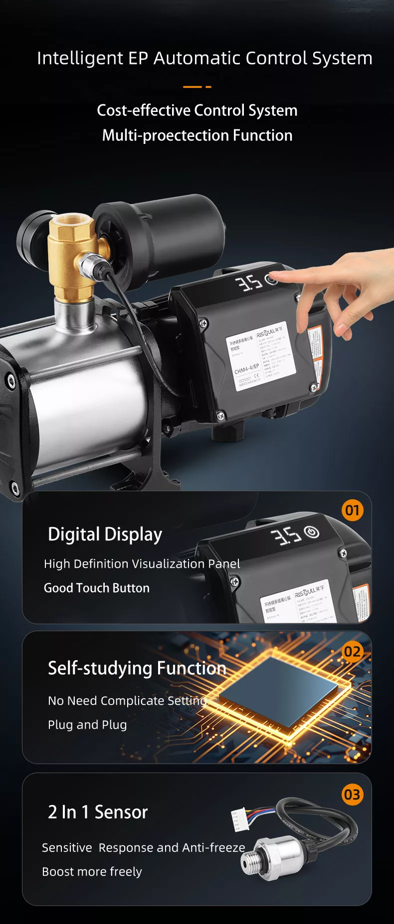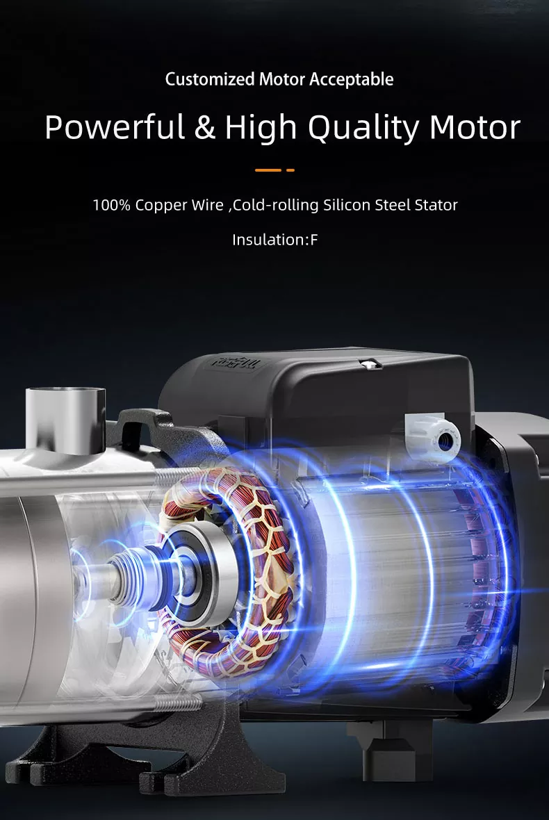 Mitmeastmeline tsentrifugaalpump on veepumba seade, mis ühendab mitu tsentrifugaalpumpa järjestikku ja genereerib tsentrifugaaljõudu, pöörates väljundrõhu suurendamiseks mitmeastmelisi tiivikuid. See suurendab järk-järgult rõhku mitmeastmeliste tiivikute jadaühenduse kaudu, saavutades seeläbi suure tõstejõu. Mitmeastmelise tsentrifugaalpumba jõudlusvahemik on lai ning voolukiirust ja tõstekõrgust saab kohandada vastavalt kasutaja vajadustele. See sobib kuuma ja külma vee tsirkuleerimiseks ja survestamiseks kõrgsurvesüsteemides, tulekaitse-, boileri toite- ja jahutusveesüsteemides ning erinevate loputusvedelike kohaletoimetamiseks.